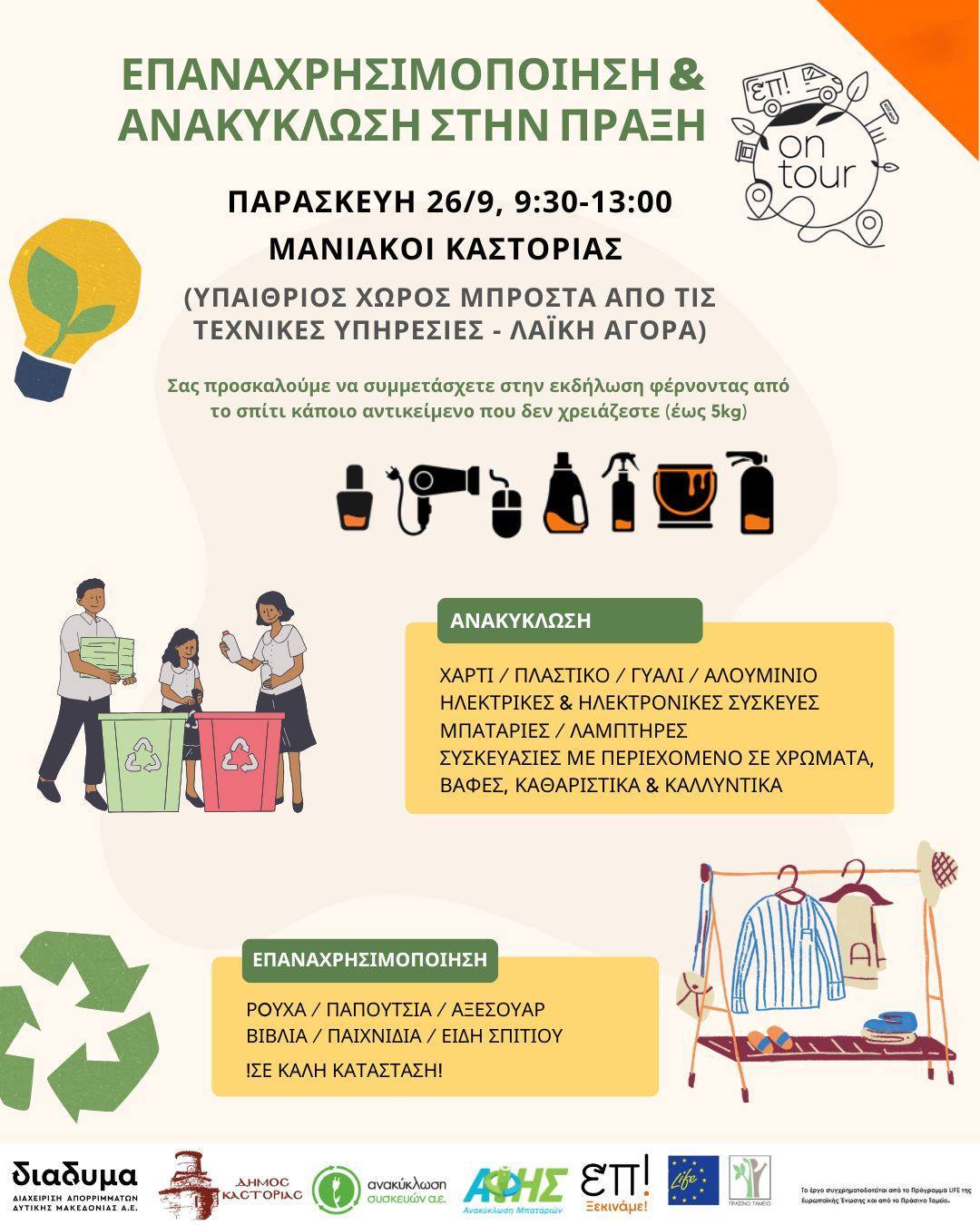 Please ensure Javascript is enabled for purposes of website accessibility Πρόσκληση σε εκδήλωση: Επαναχρησιμοποίηση & Ανακύκλωση στην πράξη - Δήμος Καστοριάς