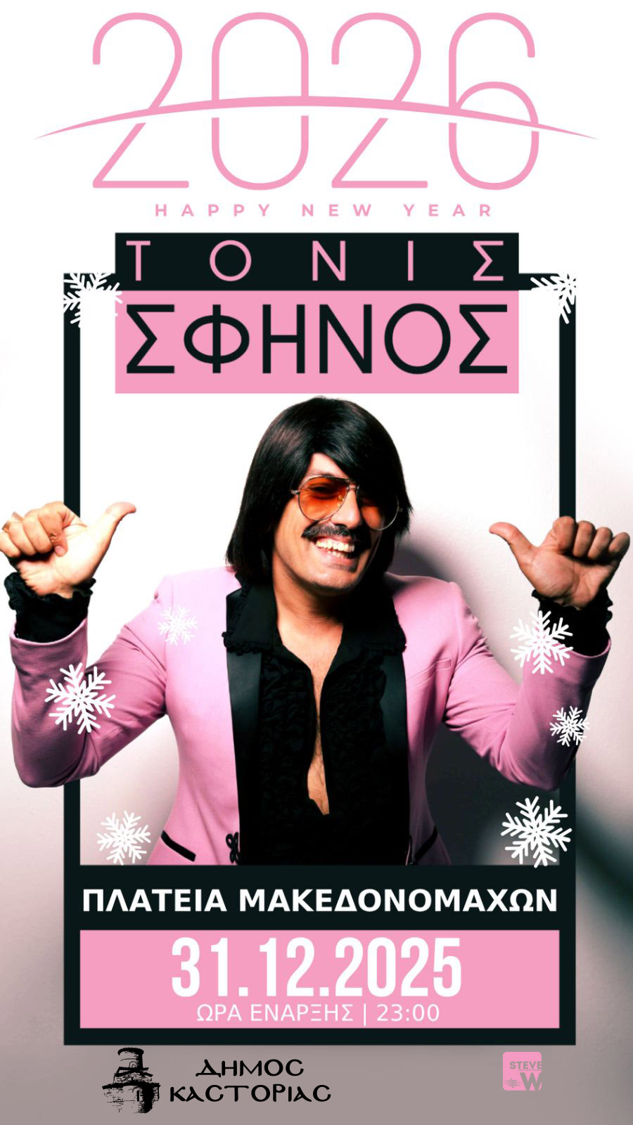Ελάτε να υποδεχτούμε όλοι μαζί το 2026 με μουσική, χαμόγελα και τον εκρηκτικό Τόνι Σφήνο, σε μια Πρωτοχρονιά που θα μείνει αξέχαστη!